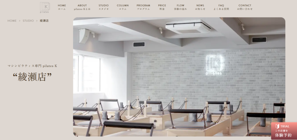 ピラティスK綾瀬店は、綾瀬駅から徒歩1分の場所にある女性専用のマシンピラティススタジオです。