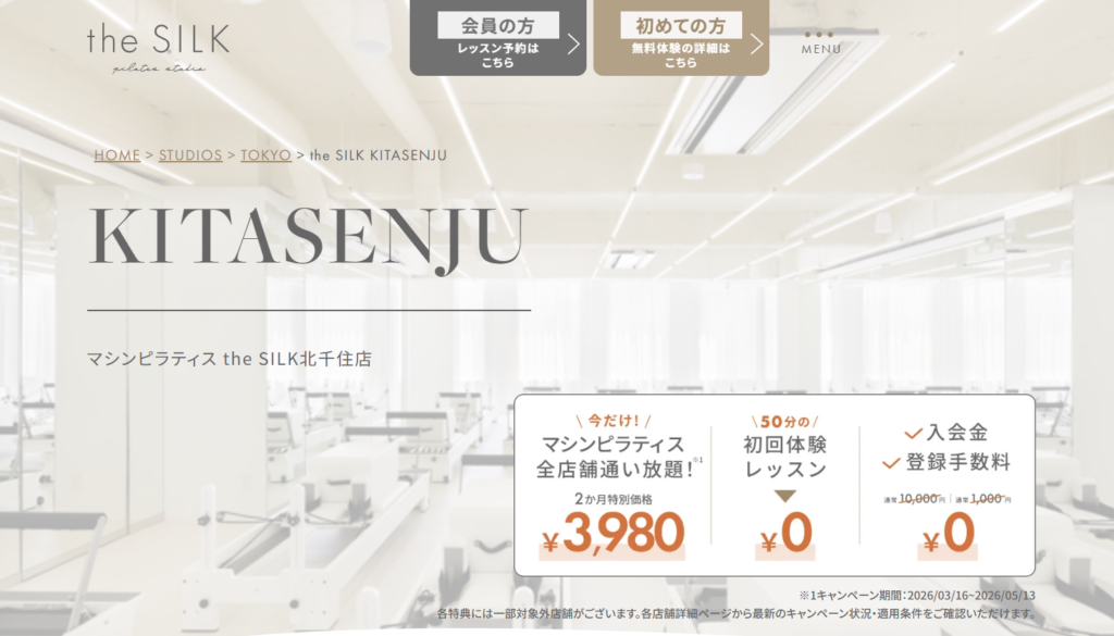 足立区のピラティス③:the SILK 北千住