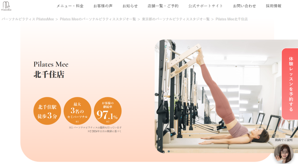 Pilates Mee 北千住店は、北千住駅から徒歩3分の場所にあるピラティススタジオです。