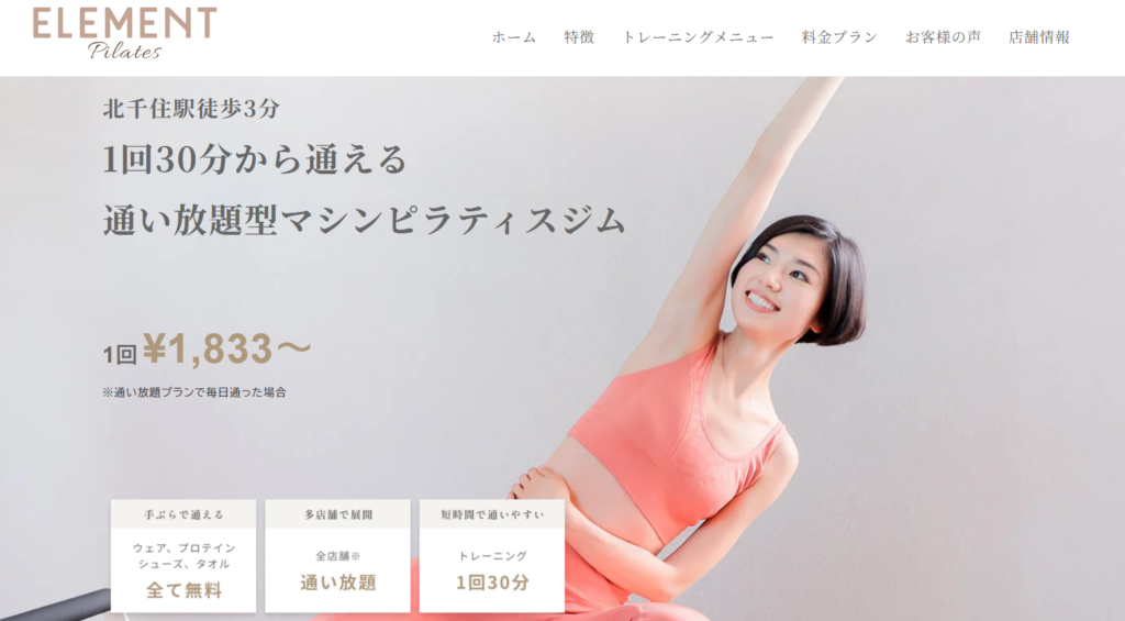ELEMENT北千住店は、北千住駅から徒歩3分の場所にあるマンツーマン指導のマシンピラティスジムです。