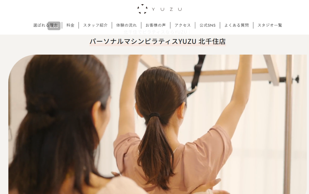 YUZU 北千住店は、完全個室でマンツーマンレッスンが受けられるパーソナルマシンピラティススタジオです。