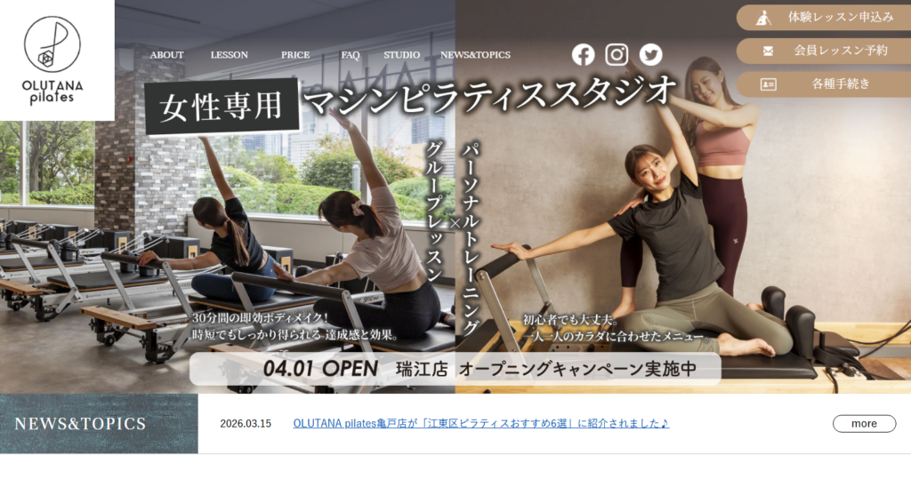 OLUTANA pilates(オルタナピラティス)五反野店は、女性専用で通えるマシンピラティススタジオです。