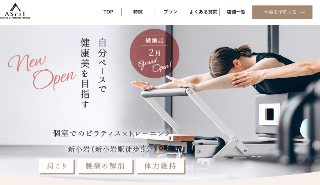 医療提携の強みを活かした身体づくりを掲げており、肩こりや腰痛などの悩みをきっかけに通い始めたい方にも検討しやすいスタジオでしょう。