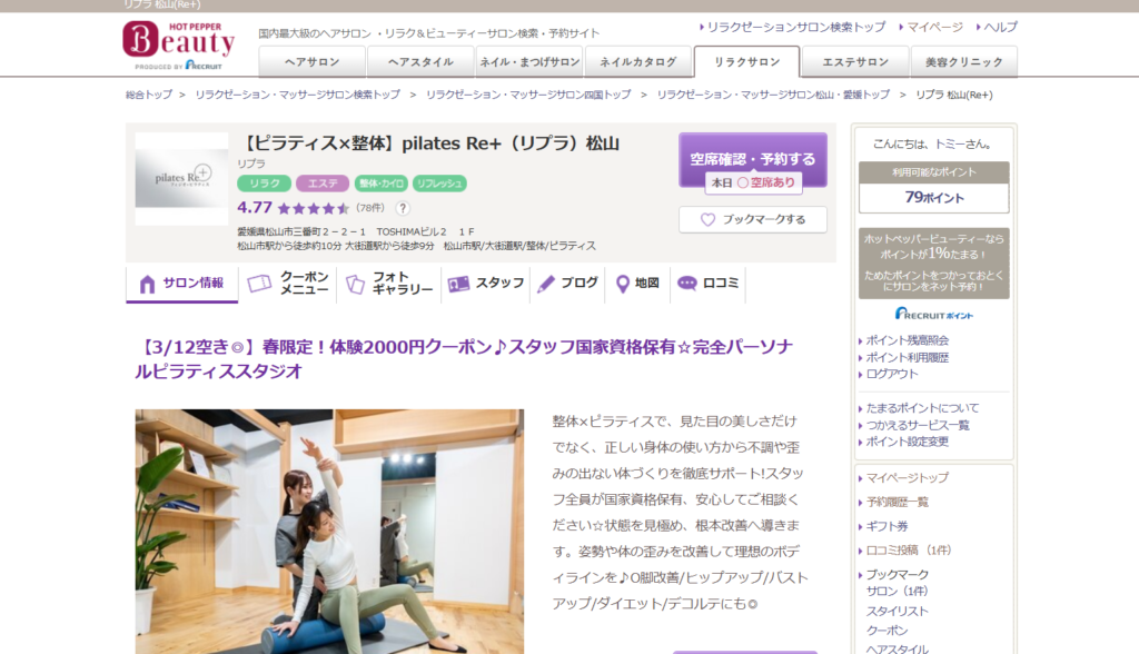 | 名称 | 【整体×ピラティス】pilates Re+ 松山 (ピラティスリプラ) |