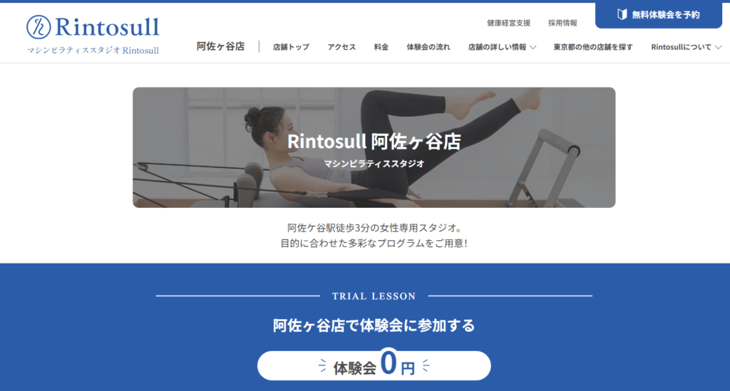 Rintosull 阿佐ヶ谷店は、女性専用のマシンピラティススタジオとして人気のある店舗です。