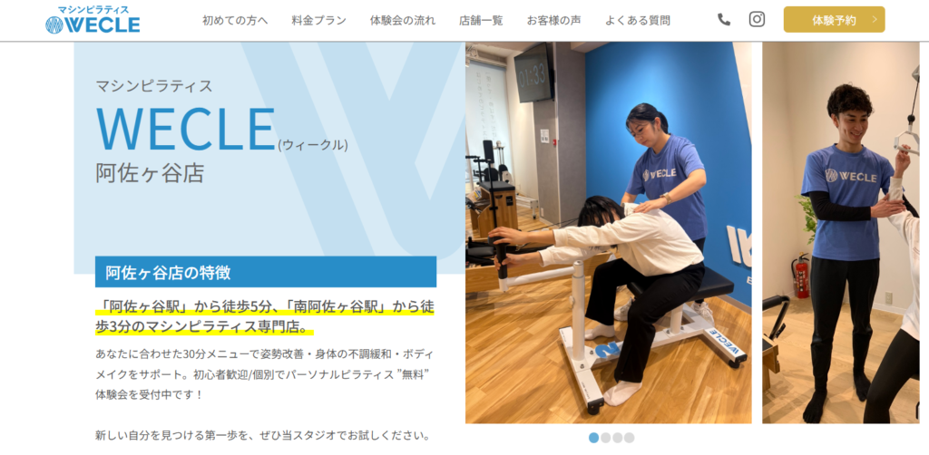 WECLE 阿佐ヶ谷店は、24時間営業で通い放題プランも選べるマシンピラティス専門店です。