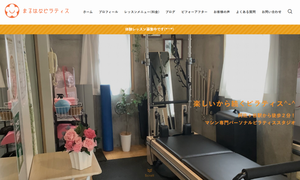 まるはなピラティスは、阿佐ヶ谷駅近くでマンツーマン指導が受けられるマシン専門のパーソナルピラティススタジオです。