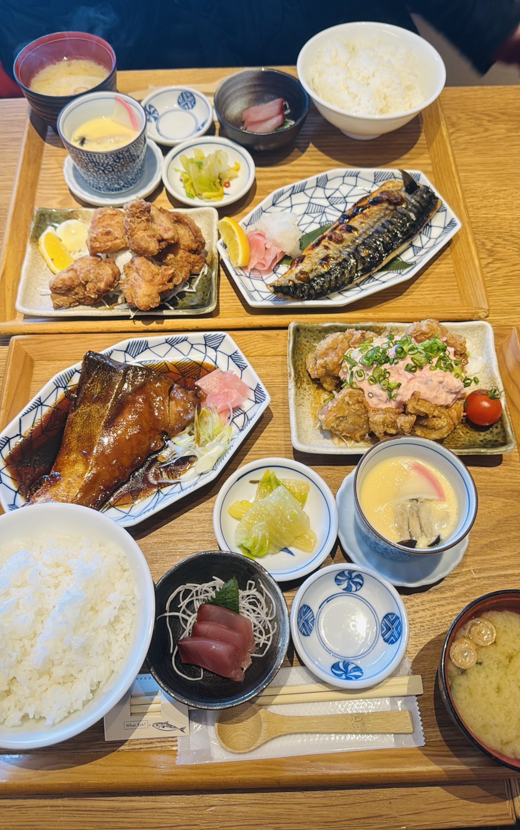 他にもハンバーグや唐揚げ、塩サバや本日のお刺身などが選べます!