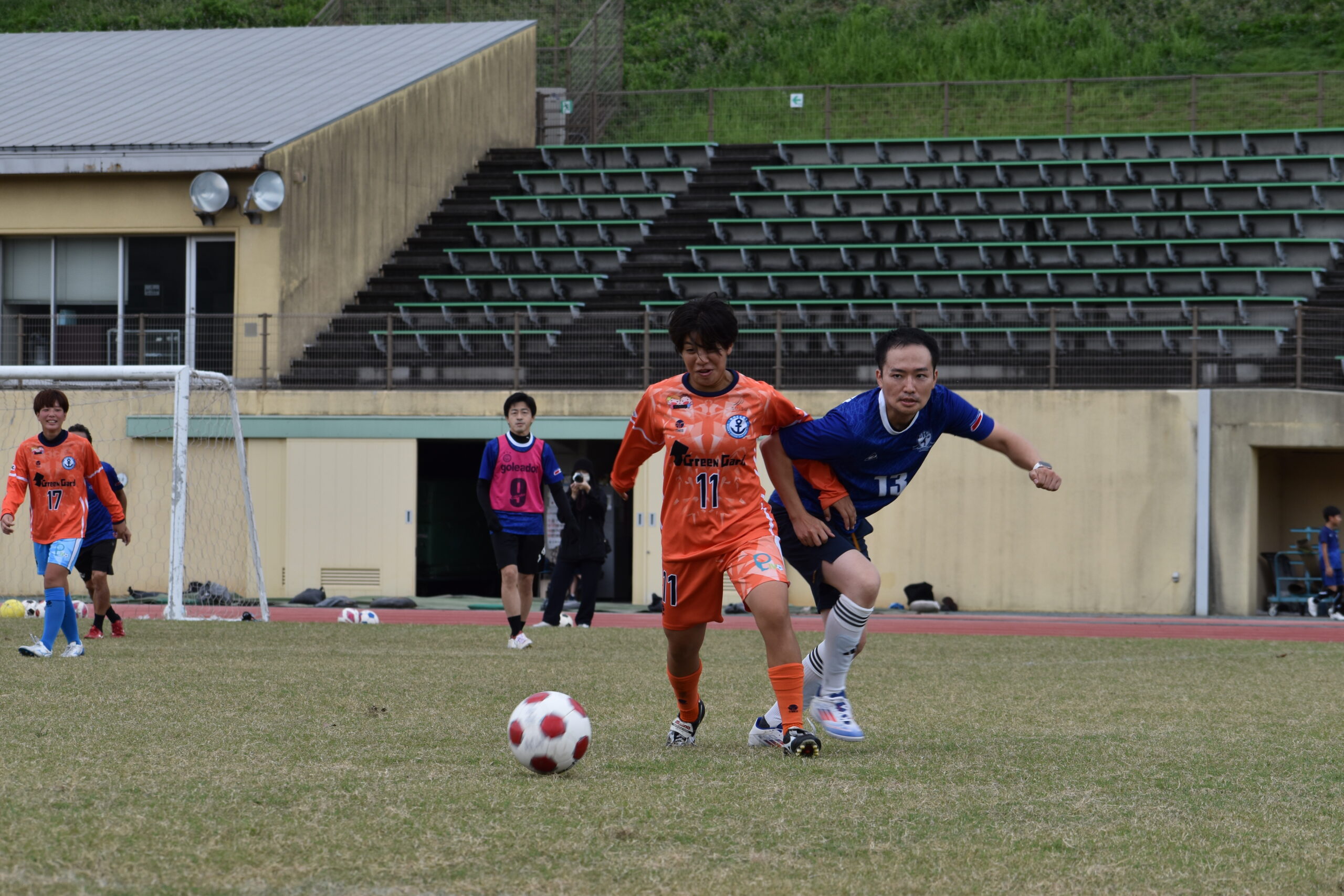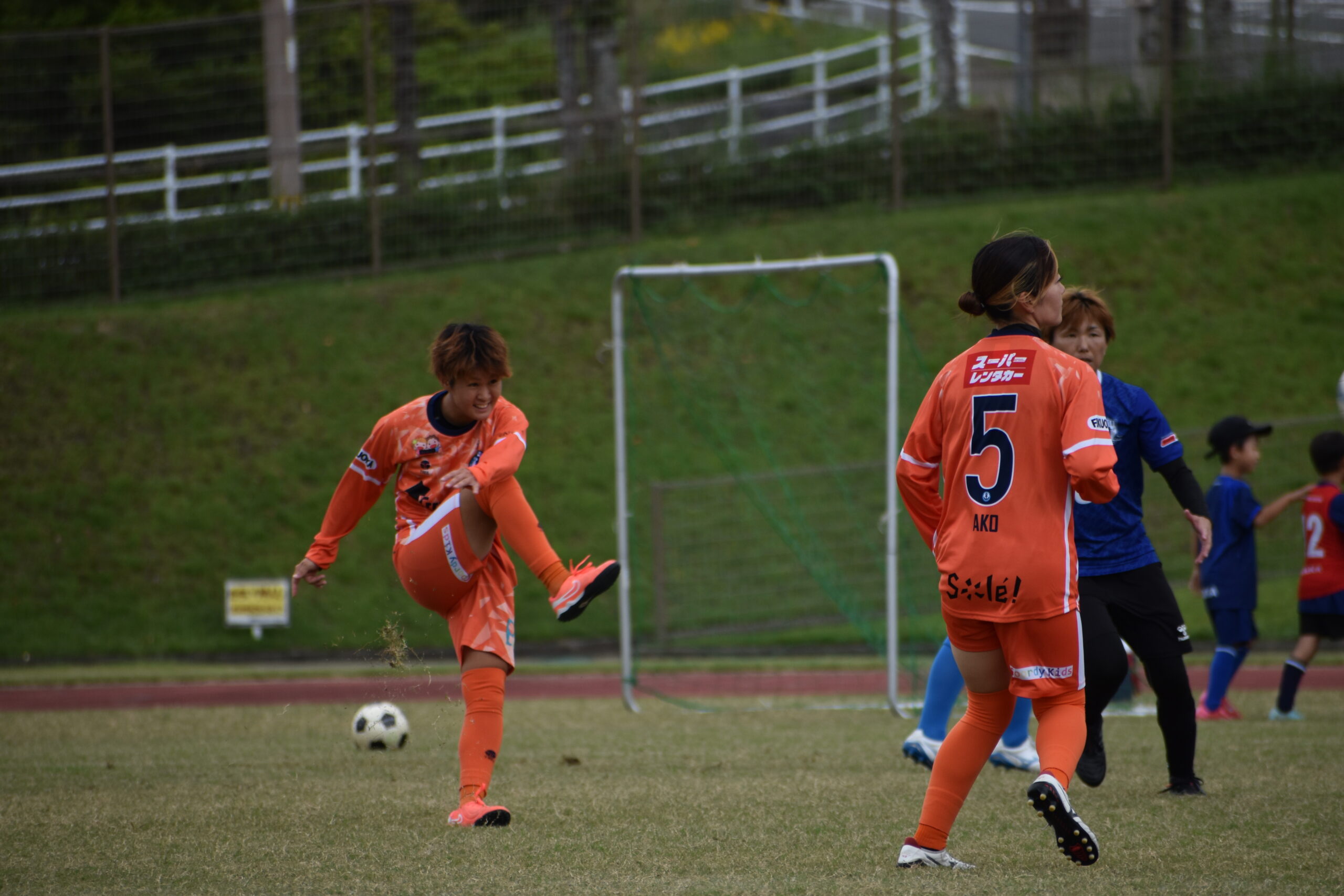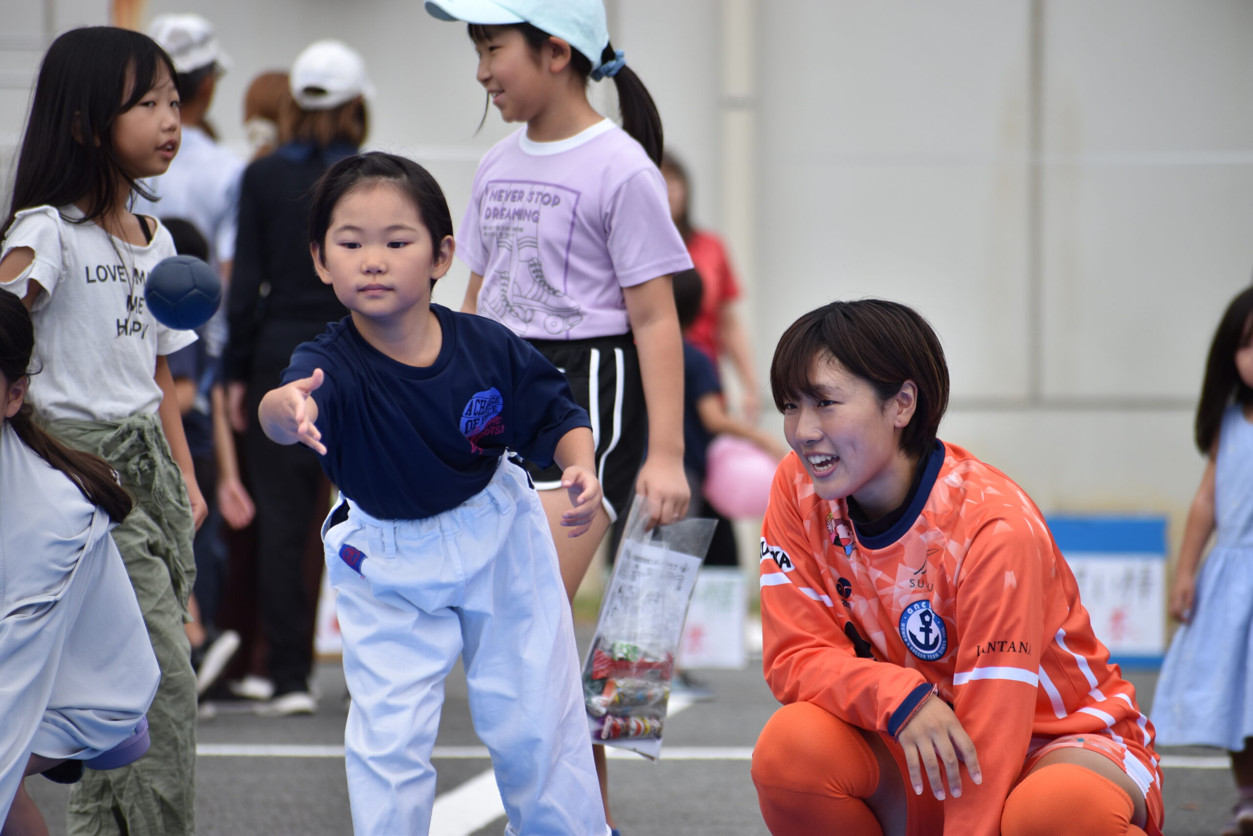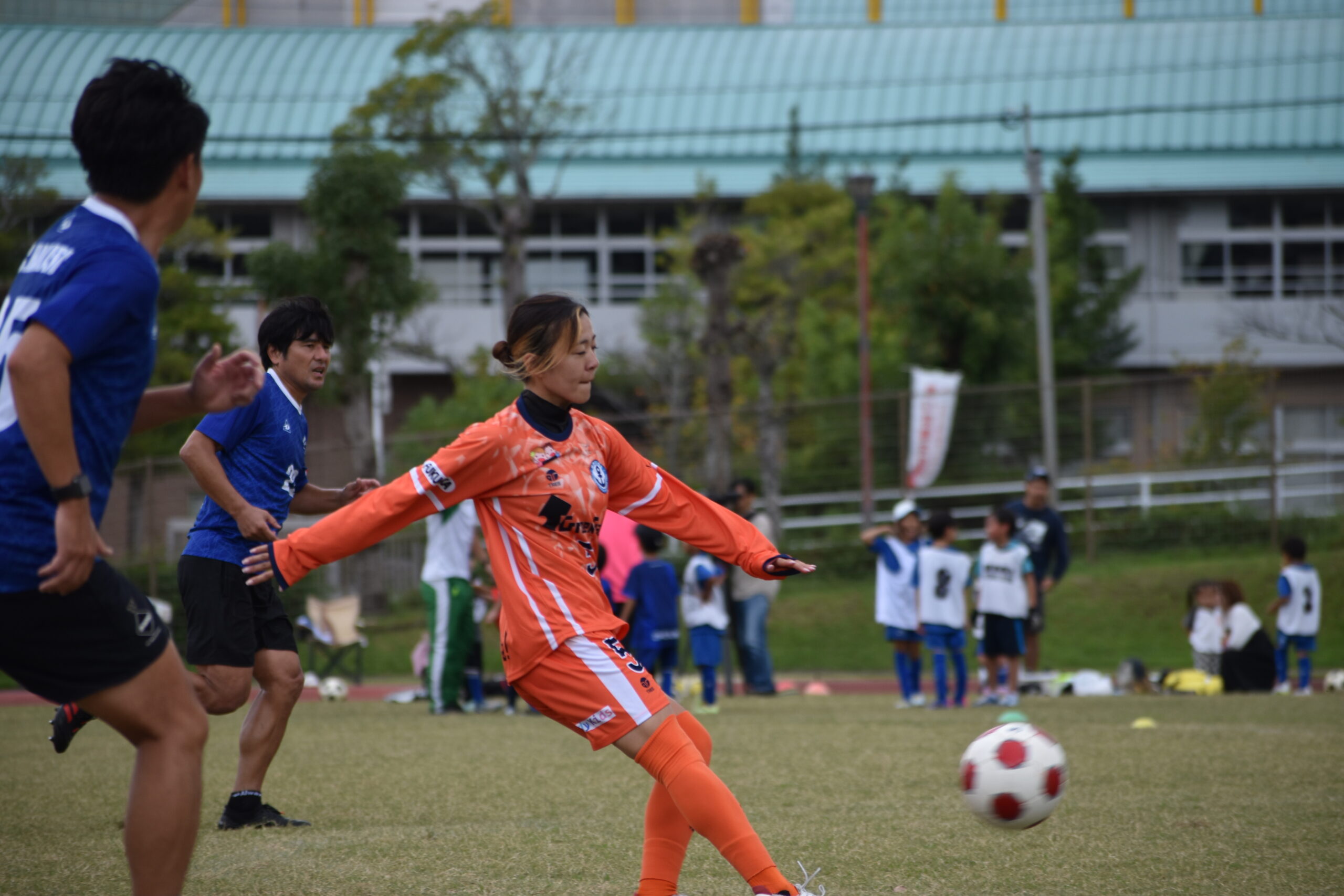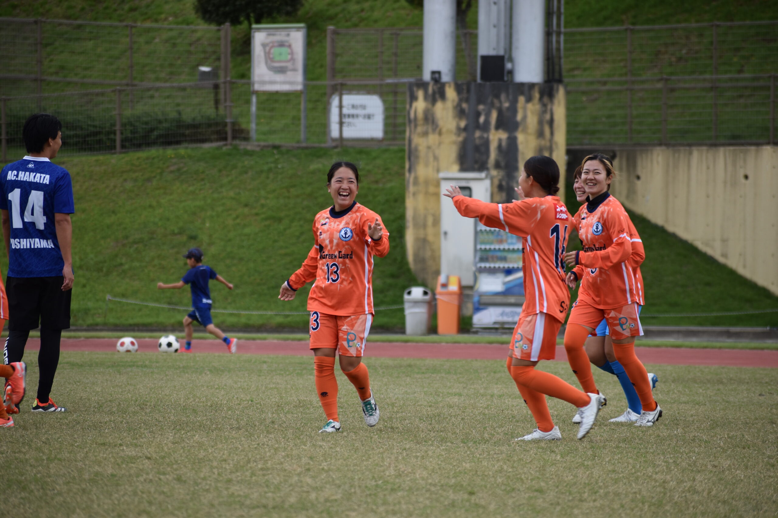 サッカーコーナーでは、AC HAKATAと宇美チームの皆さんと交流試合を行いました。
