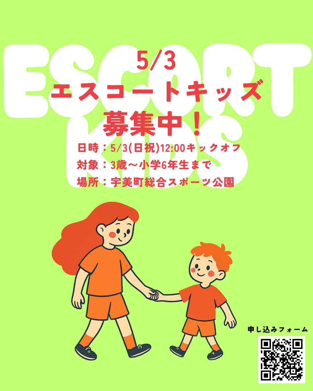 選手と一緒にピッチへ入場するエスコートキッズを募集いたします。