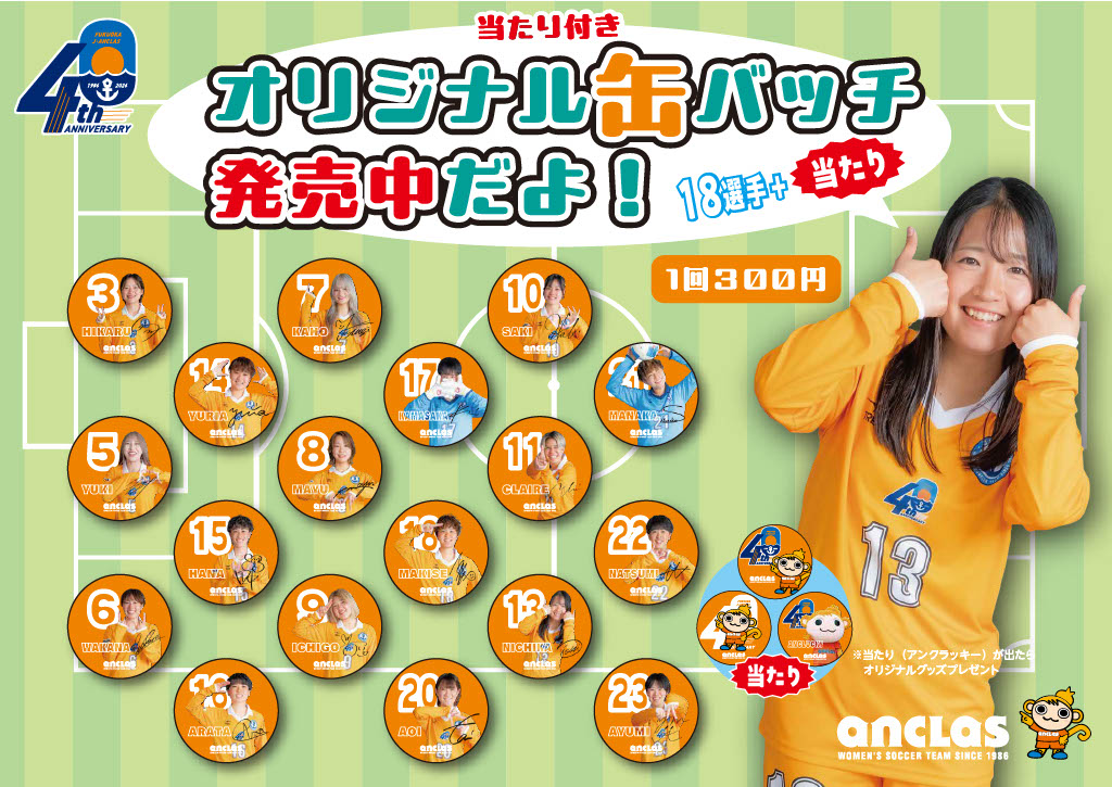 会場にて選手の缶バッチが登場!18選手+当たり(アンクラッキー)